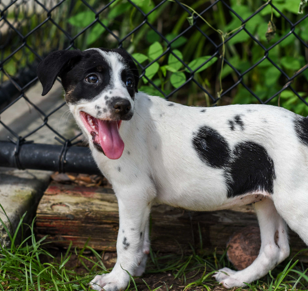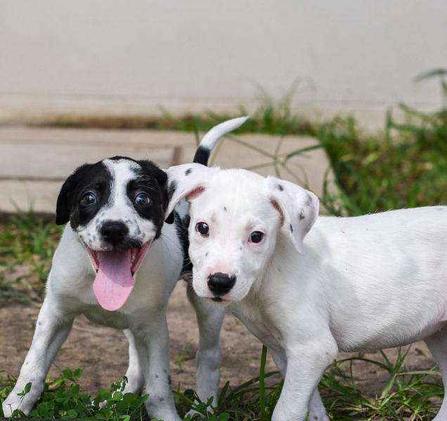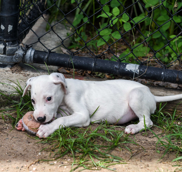 Five pups were found dumped on the driveway of a local vet. Sadly one puppy did not survive. The remaining four puppies were on death’s door.