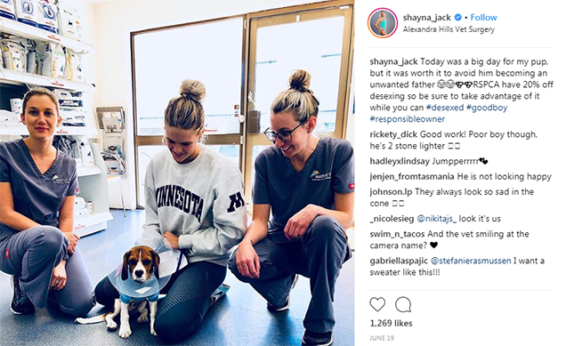 Shayna Jack took time out of the pool to desex her pup Snoopy as part of RSPCA Qld's Operation Wanted desexing initiative, find out how you can get 20% Off before 31st August.