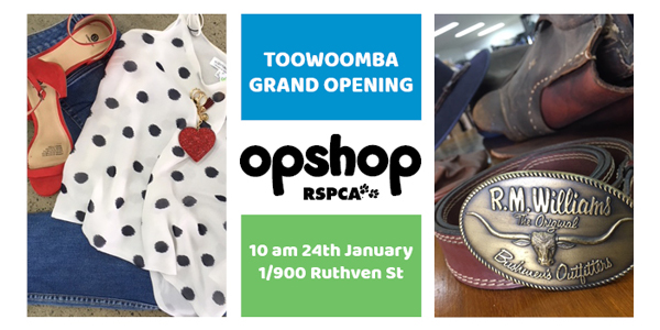 Join us at the new RSPCA Toowoomba Op Shop, 1/900 Ruthven Street, Toowoomba on Thursday 24th January 2019 doors open at 10am